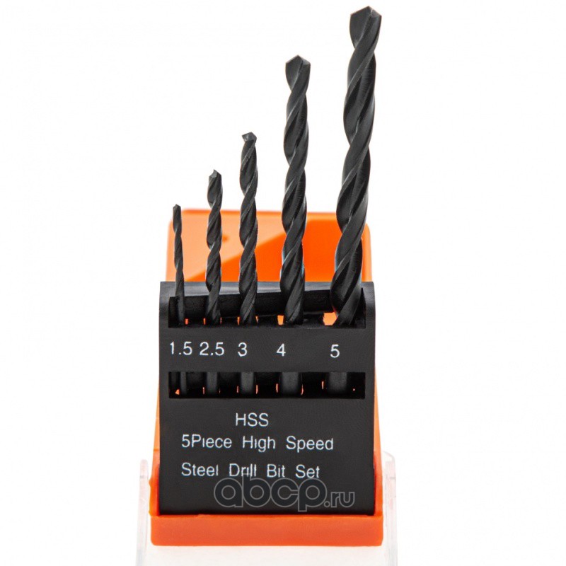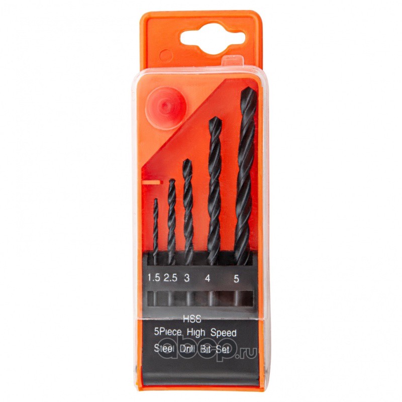 Набор сверл по металлу, 1.5-2.5-3-4-5 мм, HSS, 5 шт, пластиковый бокс, цилиндрический хвостовик Sparta