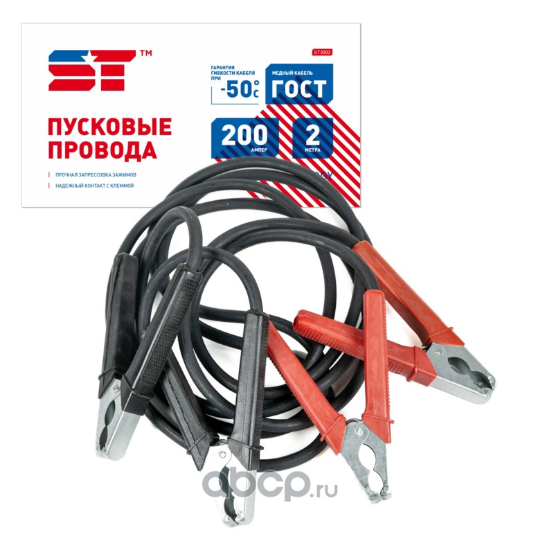 Провода пусковые 200 А 2,0 м обрезиненные в пакете