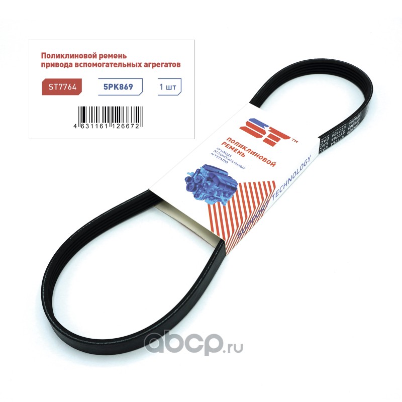 | Support Technology | ST7764 | Ремень поликлиновой 5PK869 Chevrolet Lanos 05-, ZAZ Chance 09-, Daewoo Nexia | ||