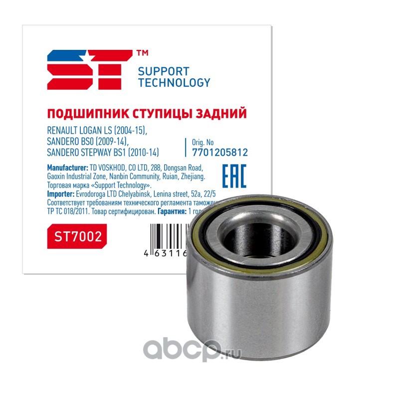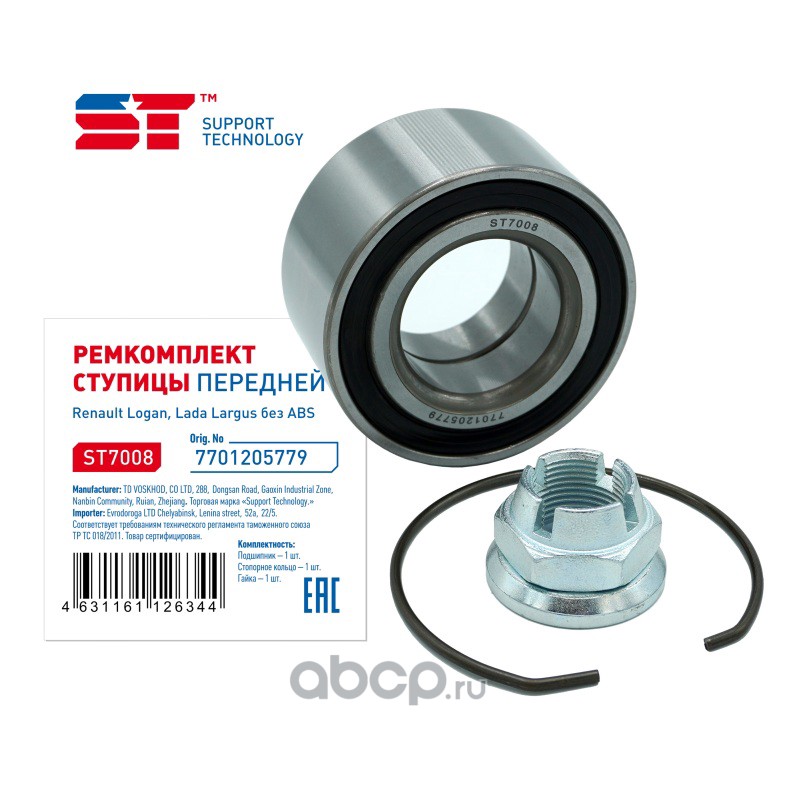 | Support Technology | ST7008 | Подшипник ступицы Lada Largus, Vesta, Xray; Renault Logan 04-; АЗЛК 2141 передней (-ABS) комплект | ||