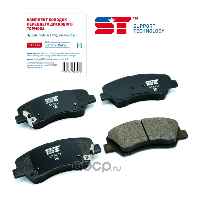 | Support Technology | ST6717 | Колодки тормозные Hyundai Solaris 17-; Kia Rio 17- передние (без отверстий под пружины) | ||