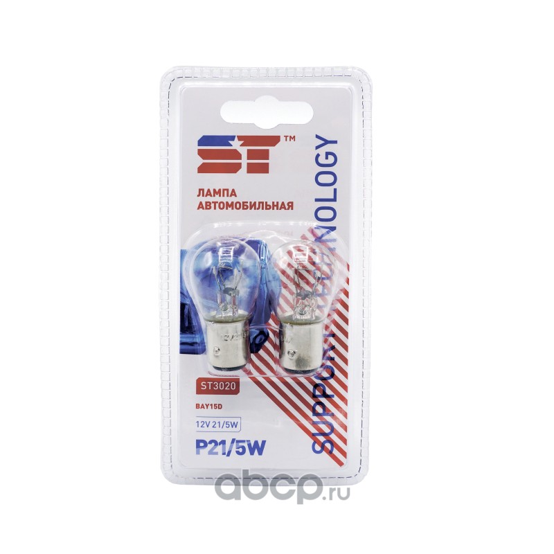 | Support Technology | ST3020 | Лампа 12 В 21/5 Вт 2х-контактная металлический цоколь блистер 2 шт. ST | ||