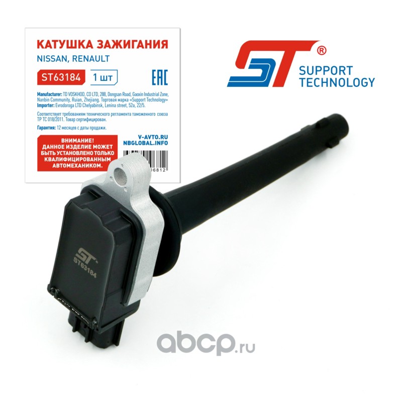 | Support Technology | ST63184 | Катушка зажигания Nissan Qashqai (J10) 06-, Tiida 07-12, X-Trail (T31) 07- (HR16DE, MR18DE) | ||