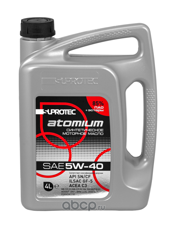 | Suprotec | 126460 | СИНТЕТИЧЕСКОЕ МОТОРНОЕ МАСЛО ATOMIUM 5W-40 С3 PAO+Esters (85%) 4 л. | ||