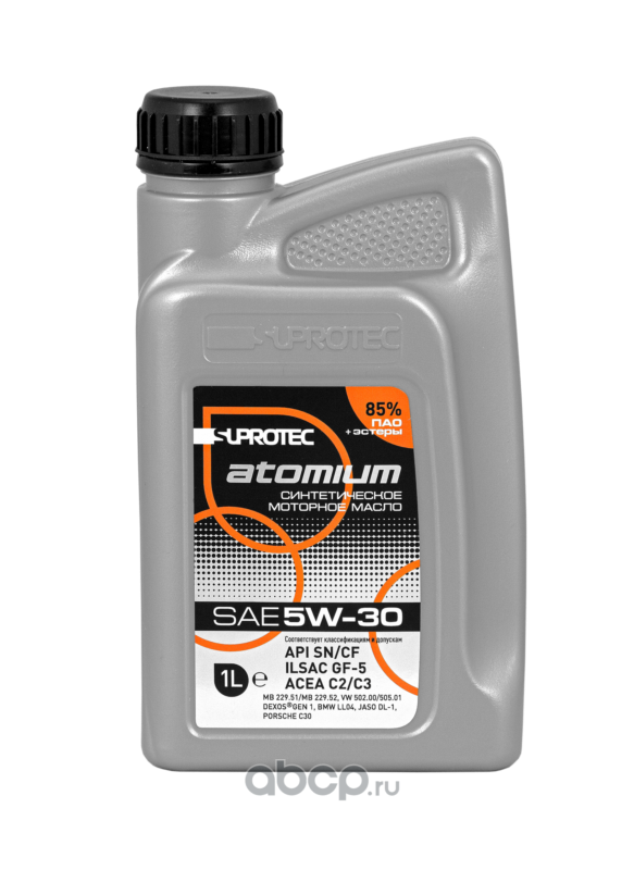 | Suprotec | 126453 | СИНТЕТИЧЕСКОЕ МОТОРНОЕ МАСЛО ATOMIUM 5W-30 С2/С3 PAO+Esters (85%) 1 л. |