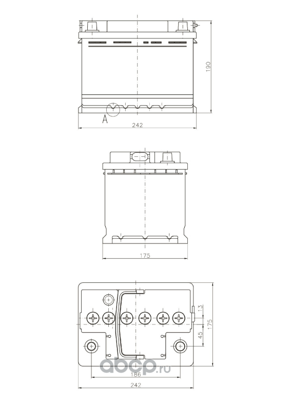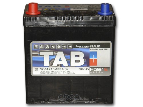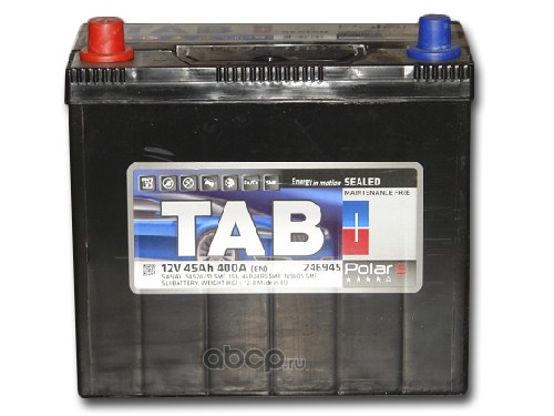 TAB 246945 Батарея аккумуляторная 45А/ч 400А прямая полярн. тонкие вынос. (Азия) клеммы