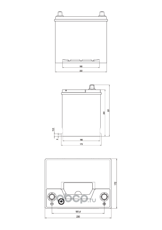 TAB 246860 Батарея аккумуляторная 60А/ч 600А обратная полярн. выносные (Азия) клеммы