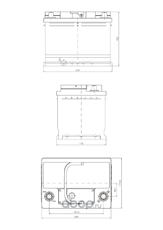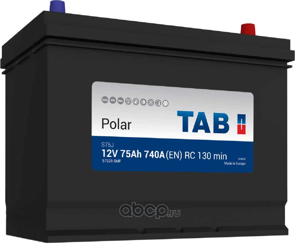 TAB 1000937 Батарея аккумуляторная 75А/ч 740А 12В обратная поляр. выносные (Азия) клеммы