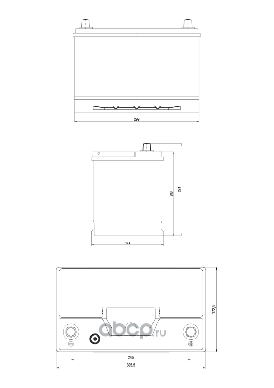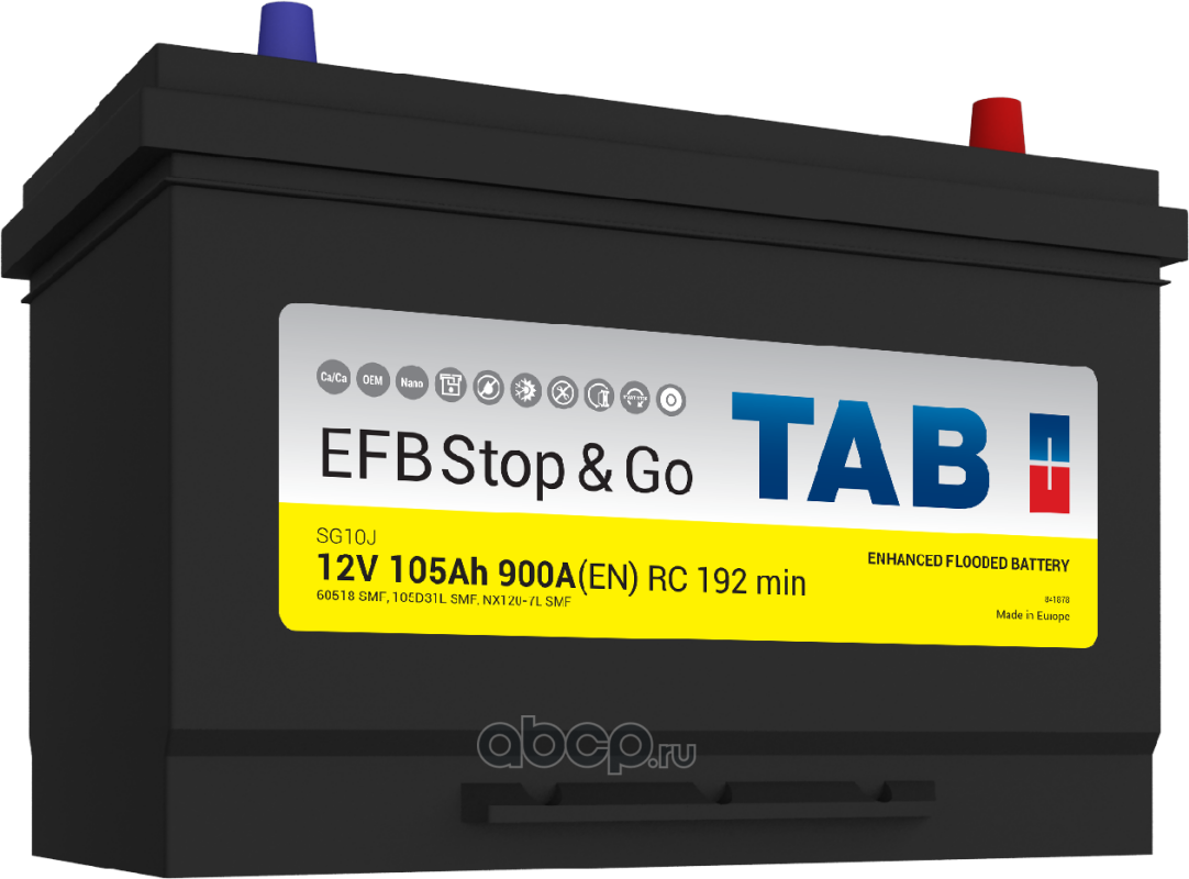 TAB 1000786 Батарея аккумуляторная 105А/ч 900А 12В обратная поляр. выносные (Азия) клеммы