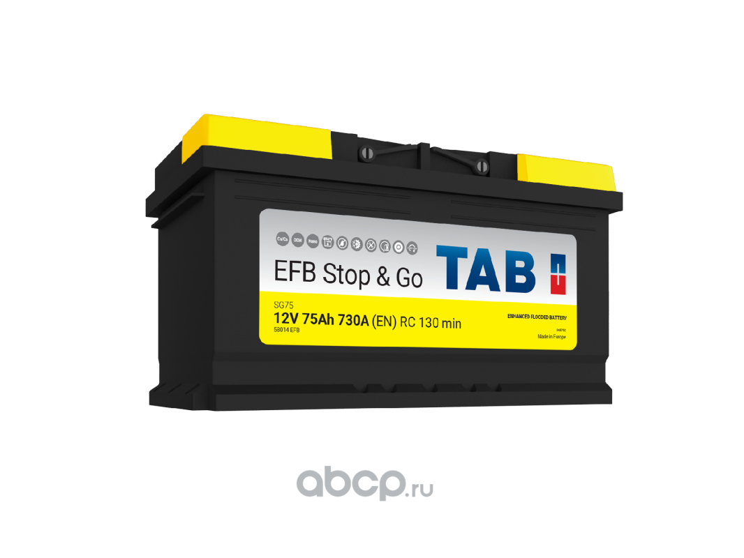 TAB 1000790 Батарея аккумуляторная 75А/ч 730А 12В обратная поляр. стандартные клеммы