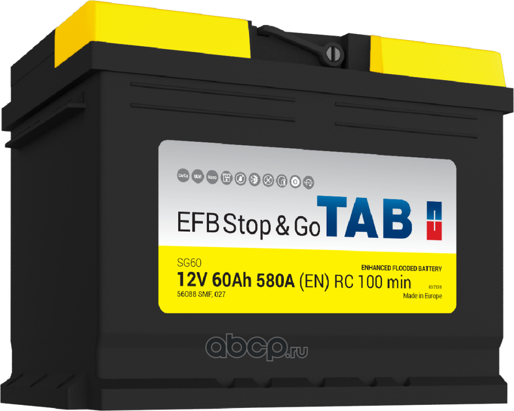 TAB 121260 Батарея аккумуляторная 60А/ч 560А обратная полярн. стандартные (Европа) клеммы