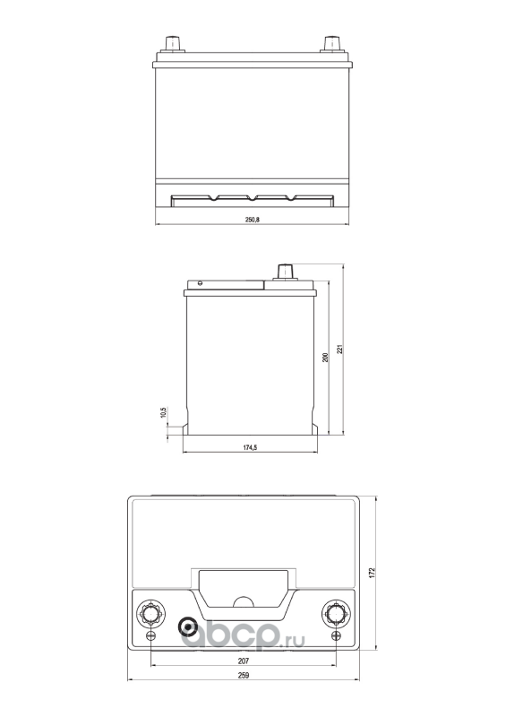 TAB 246755 Батарея аккумуляторная 55А/ч 540А прямая полярн. тонкие вынос. (Азия) клеммы