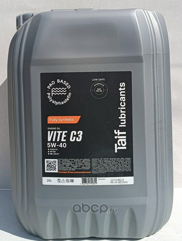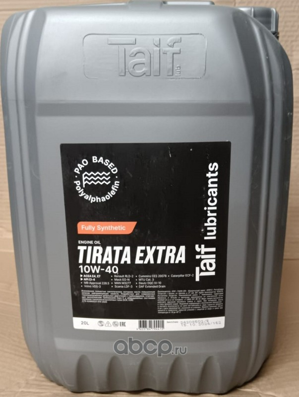 Масло моторное синтетика TAIF Lubricants TIRATA EXTRA 10W-40 20 л.