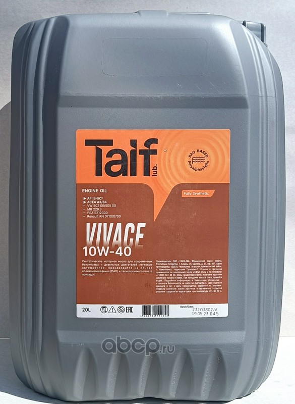 Масло моторное полусинтетика TAIF Lubricants VIVACE 10W-40 20 л.