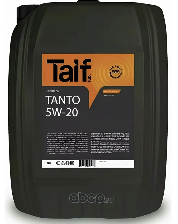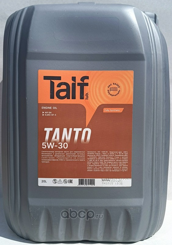 | TAIF Lubricants | 211039 | Масло моторное синтетика TAIF Lubricants TANTO 5W-20 20 л. | ||