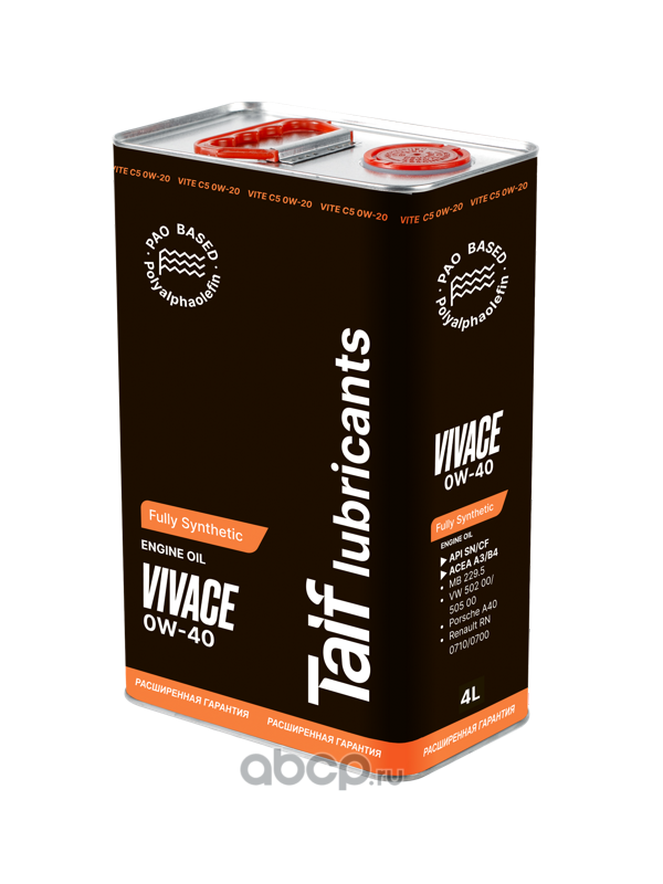| TAIF Lubricants | 211170 | Масло моторное синтетика 0w-40 4л. | ||