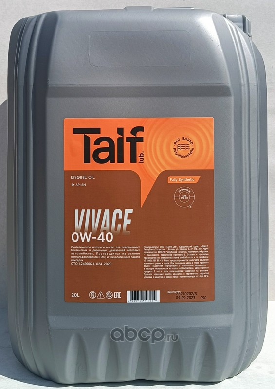 | TAIF Lubricants | 211171 | Масло моторное синтетика 0w-40 20л. |