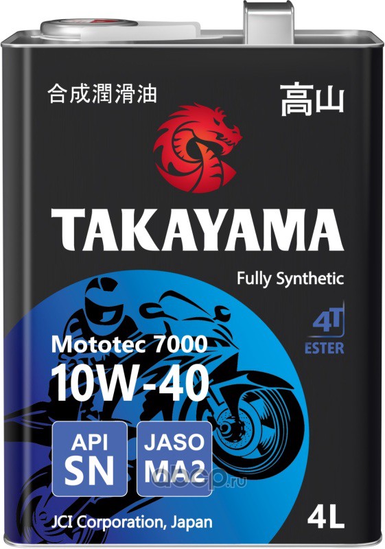 | TAKAYAMA | 605581 | Масло моторное синтетическое для четырехтактных двигателей Mototec 7000 4T SAE 10W-40 API SN JASO MA2 4л (металл) | ||