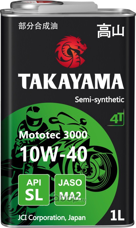 | TAKAYAMA | 605571 | Масло моторное полусинтетическое для четырехтактных двигателей Mototec 3000 4T SAE 10W-40 API SL JASO MA2 1л (металл) | ||