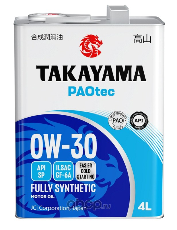 | TAKAYAMA | 6056056 | Масло моторное синтетическое PAOtec SAE 0W-30 ILSAC GF-6A API SP 4л (металл) | ||