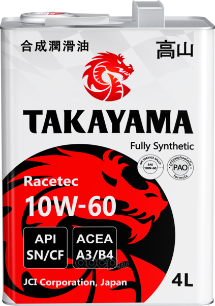 | TAKAYAMA | 605583 | Масло моторное синтетическое Racetec SAE 10W-60 ACEA A3/B4 API SN/CF 4л (металл) | ||