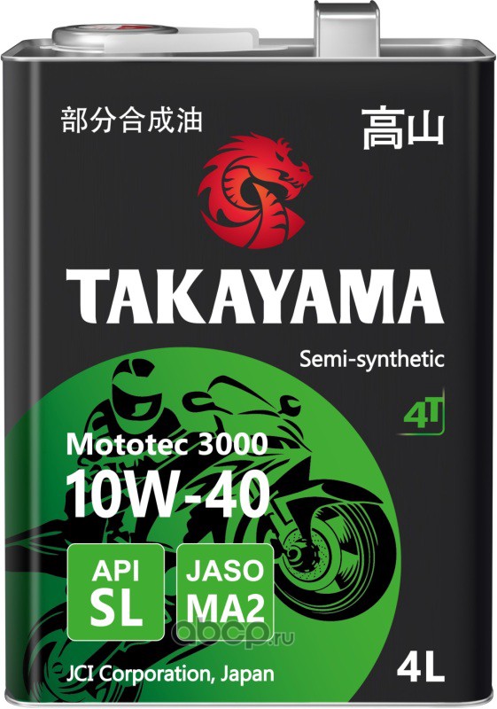 | TAKAYAMA | 605579 | Масло моторное полусинтетическое для четырехтактных двигателей Mototec 3000 4T SAE 10W-40 API SL JASO MA2 4л (металл) | ||