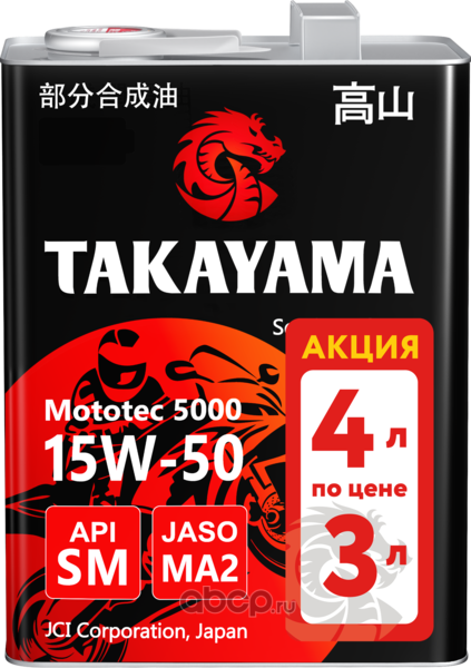 Масло моторное полусинтетическое для четырехтактных двигателей Mototec 5000 4T SAE 15W-50 API SM JASO MA2 4л (металл) Акция 4л по цене 3л