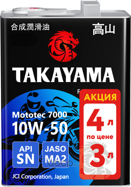 Масло моторное синтетическое для четырехтактных двигателей Mototec 7000 4T SAE 10W-50 API SN JASO MA2 4л (металл) Акция 4л по цене 3л