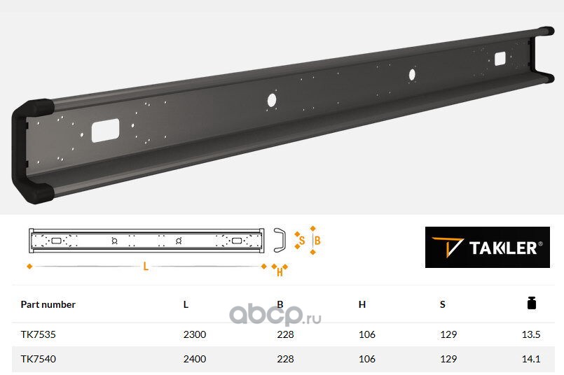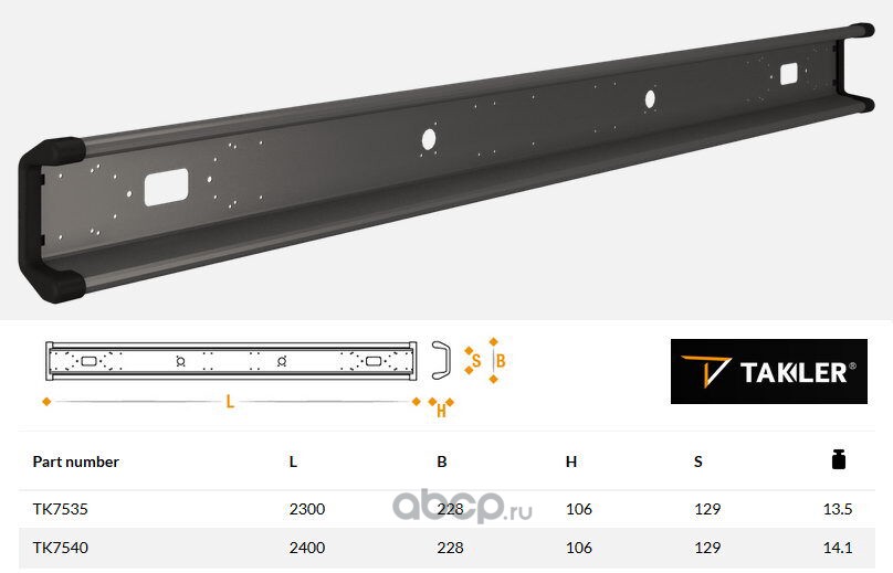 | TAKLER | TK7540 | Бампер задний 2400мм (тёмно-серый, с заглушками) | ||