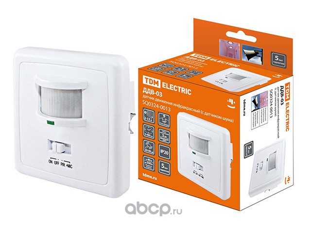 | TDM ELECTRIC | SQ03240013 | Датчик движения встраив. в стену ДДВ-03 500Вт, 5-480с, 2-12м, 5+Лк, 140гр, 30-90Дб, IP20, | ||