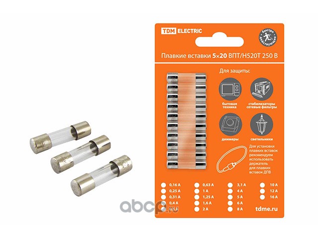 | TDM ELECTRIC | SQ07380006 | Плавкая вставка ВПБ6-6 0,63А 250В упак (10 шт.) | ||