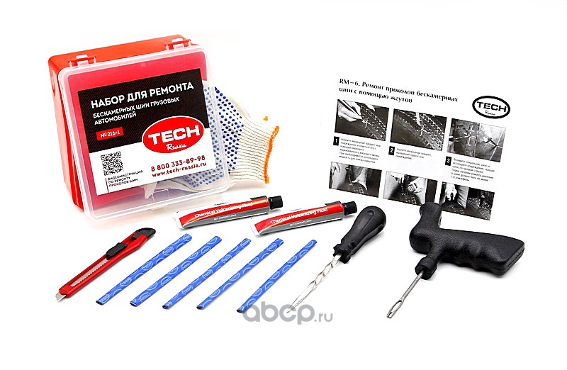 | TECH | 2161 | Набор для ремонта проколов в бескамерных грузовых шинах жгутами ТЕСН Permacure | ||