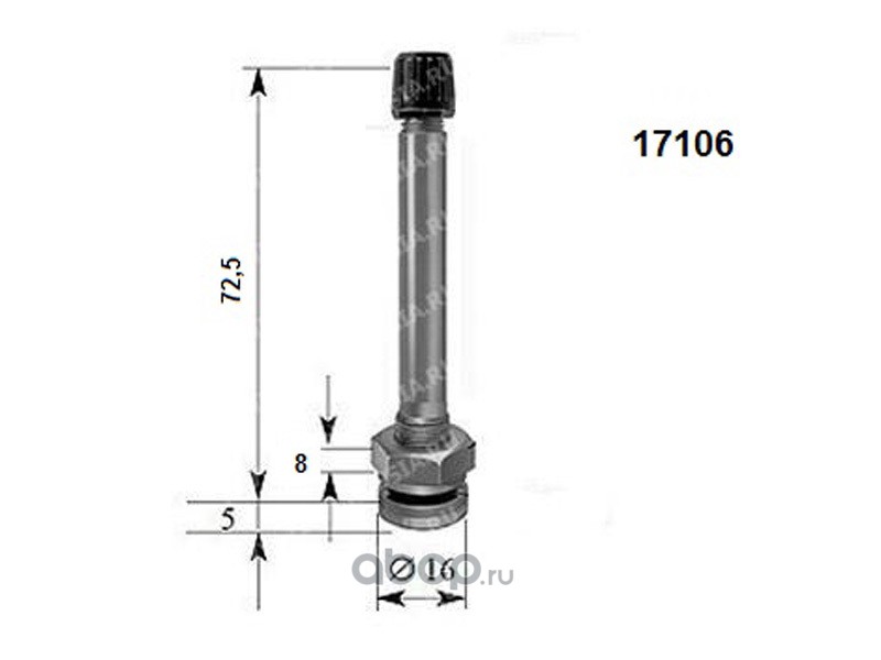 | TECH | 17106 | Металлический вентиль для б/к легкосплавных дисков грузовых автомобилей и автобусов, диаметр отверстия в диске 9.7 мм, длина 72.5 мм | ||