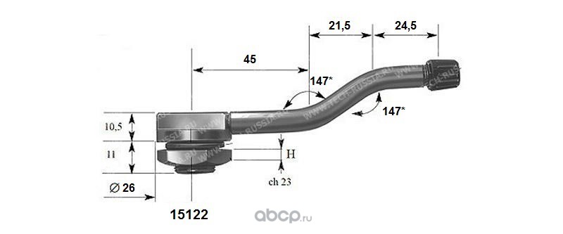 | TECH | 15122 | Металлический угловой вентиль для б/к грузовых дисков, диаметр отверстия в диске 15.7 мм, длина 91 мм, два изгиба с углами по 147 градуса | ||