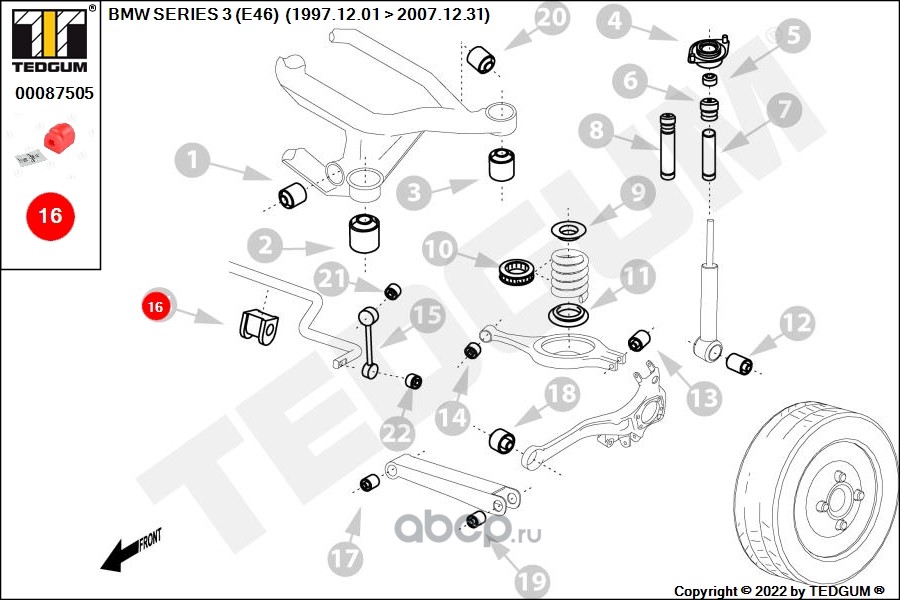 | TEDGUM | 00088187 | Сайлентблок рычага подвески | ||