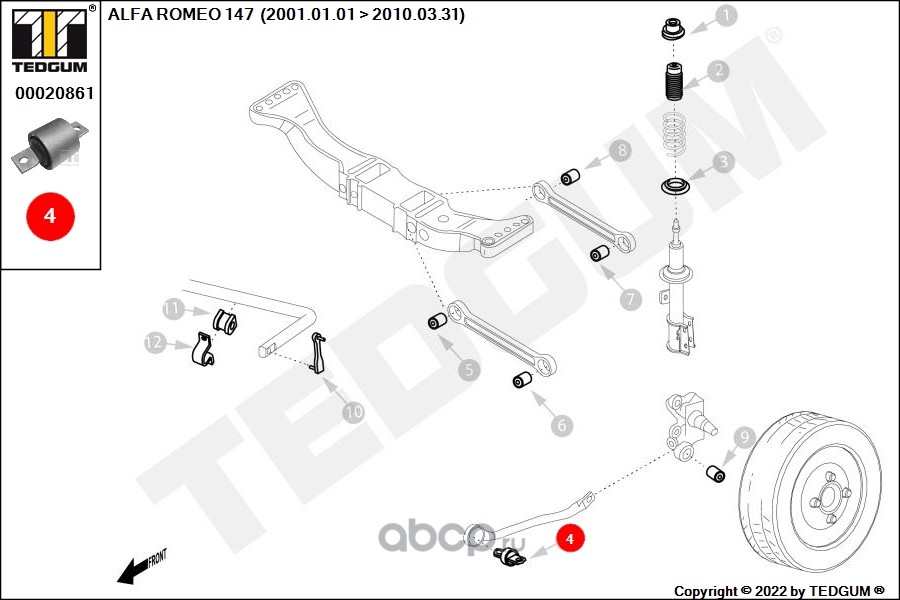 | TEDGUM | 00020861 | Сайлентблок рычага подвески | ||