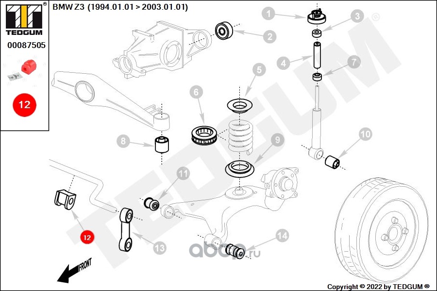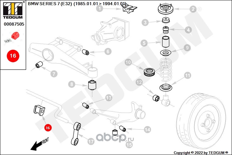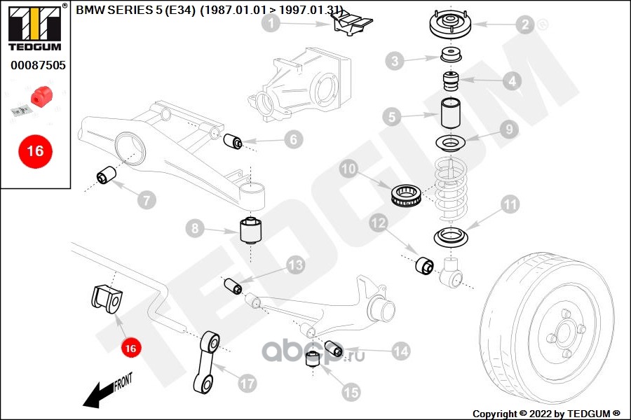 | TEDGUM | 00087505 | Полиуретановая втулка стабилизатора | ||