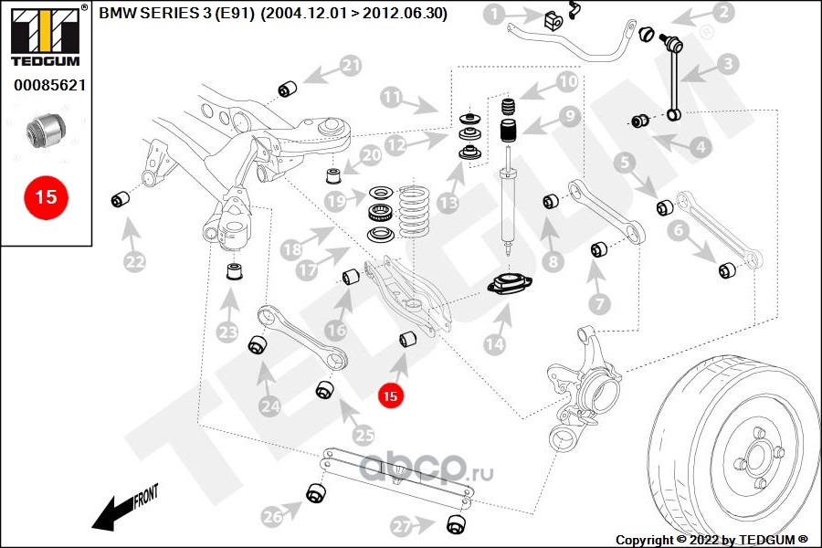 | TEDGUM | 00085621 | Сайлентблок рычага подвески | ||