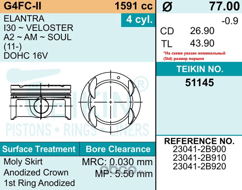 | TEIKIN | 51145STD | Поршень двигателя (4шт. упак) | ||