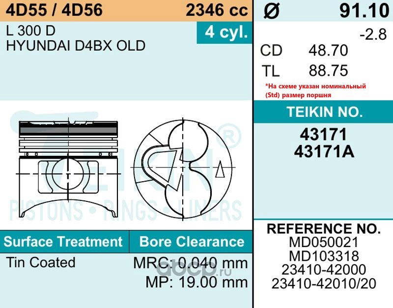 | TEIKIN | 43171STD | Поршень двигателя (4шт. упак) | ||