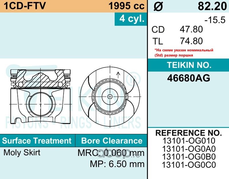 TEIKIN | 43670AGSTD | Поршень двигателя (4шт. упак) | |