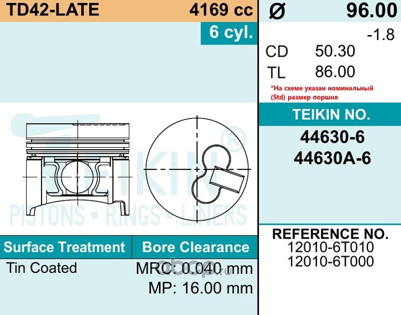 | TEIKIN | 42613AGSTD | Поршень двигателя | ||