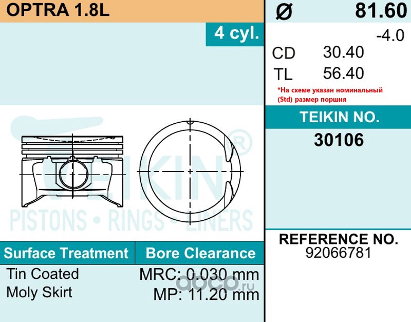 TEIKIN | 33106STD | Поршень двигателя (4шт. упак) | |