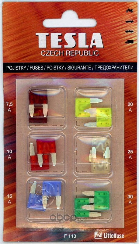 | TESLA | F1131 | Предохранители флажк. комп.мини F 113 | ||
