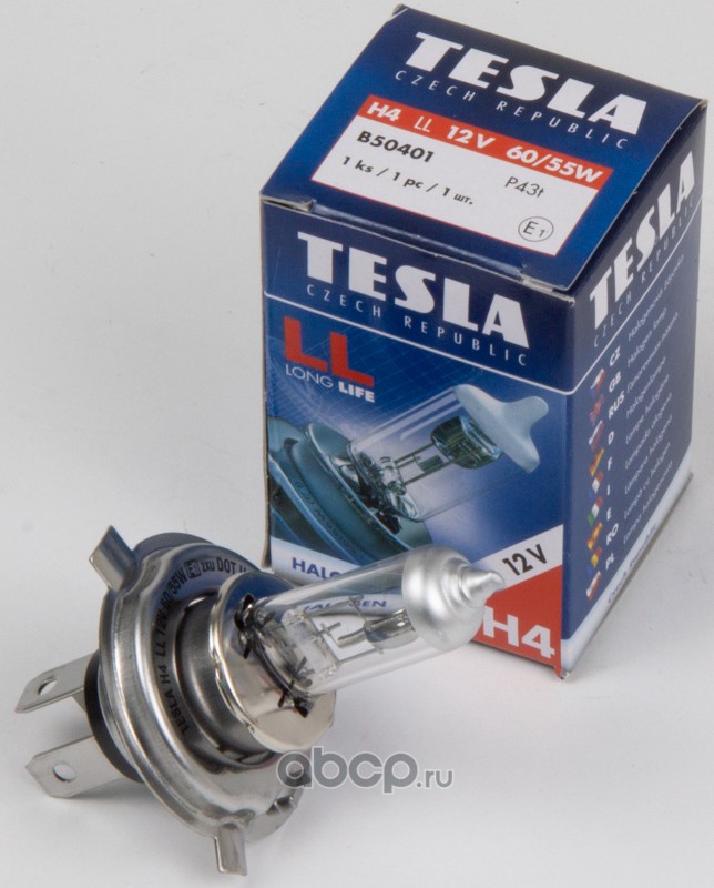 | TESLA | B50401 | Лампа галогеновая H4 LL,12V,60/55W, P43t | ||