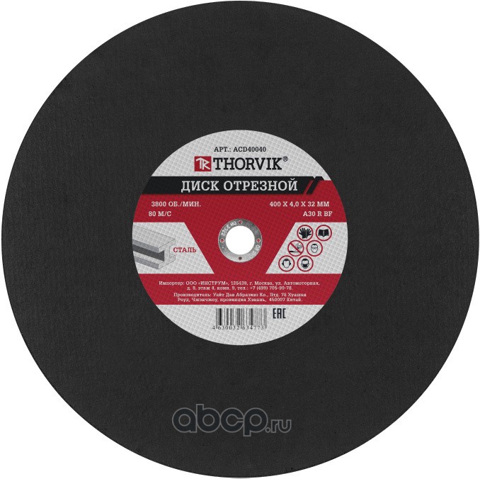 | THORVIK | ACD40040 | Диск отрезной абразивный по металлу, 400х4.0х32 мм | ||