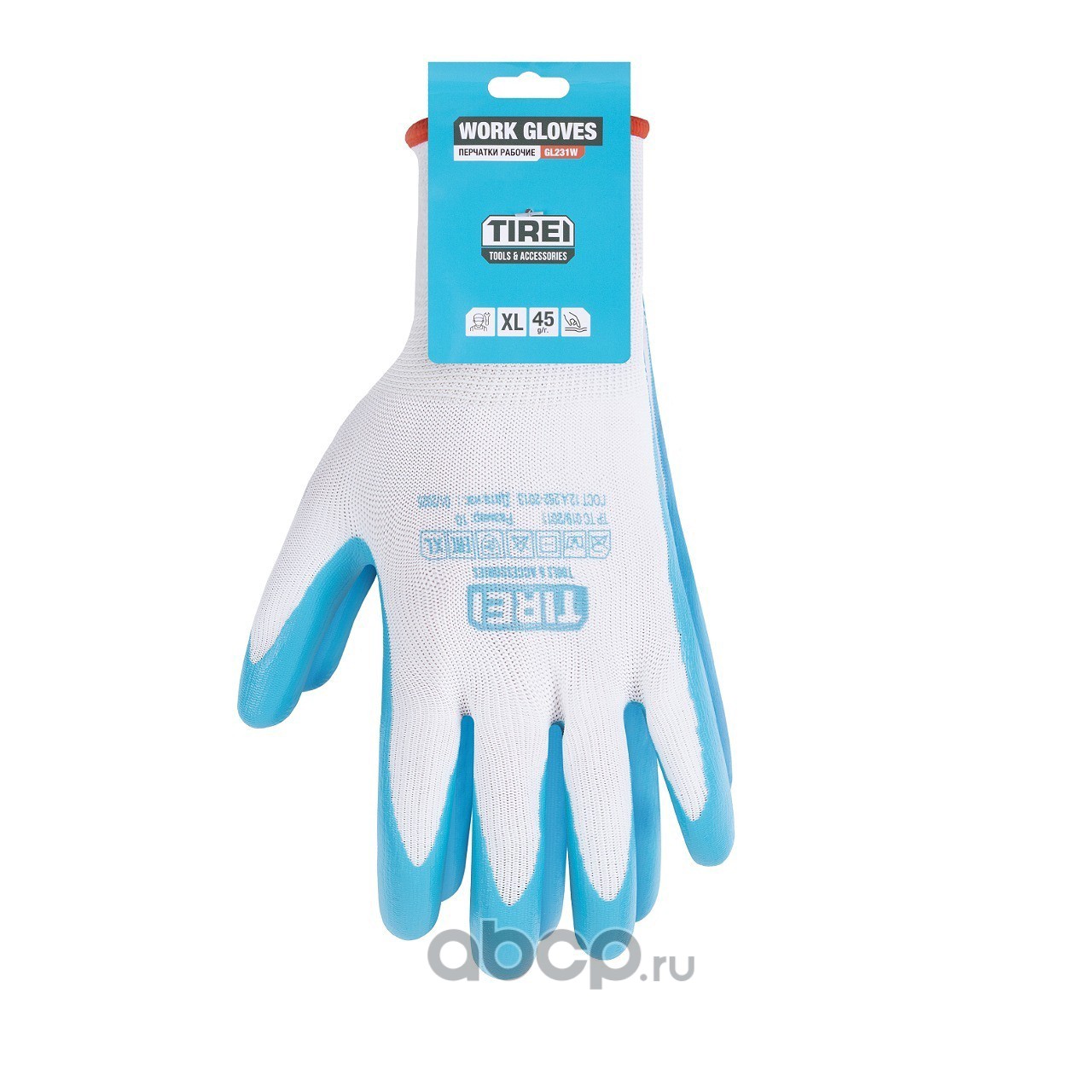 Перчатки полиэфирные с цельным нитриловым покрытием ладони, 1 пара, XL, бел./голубые