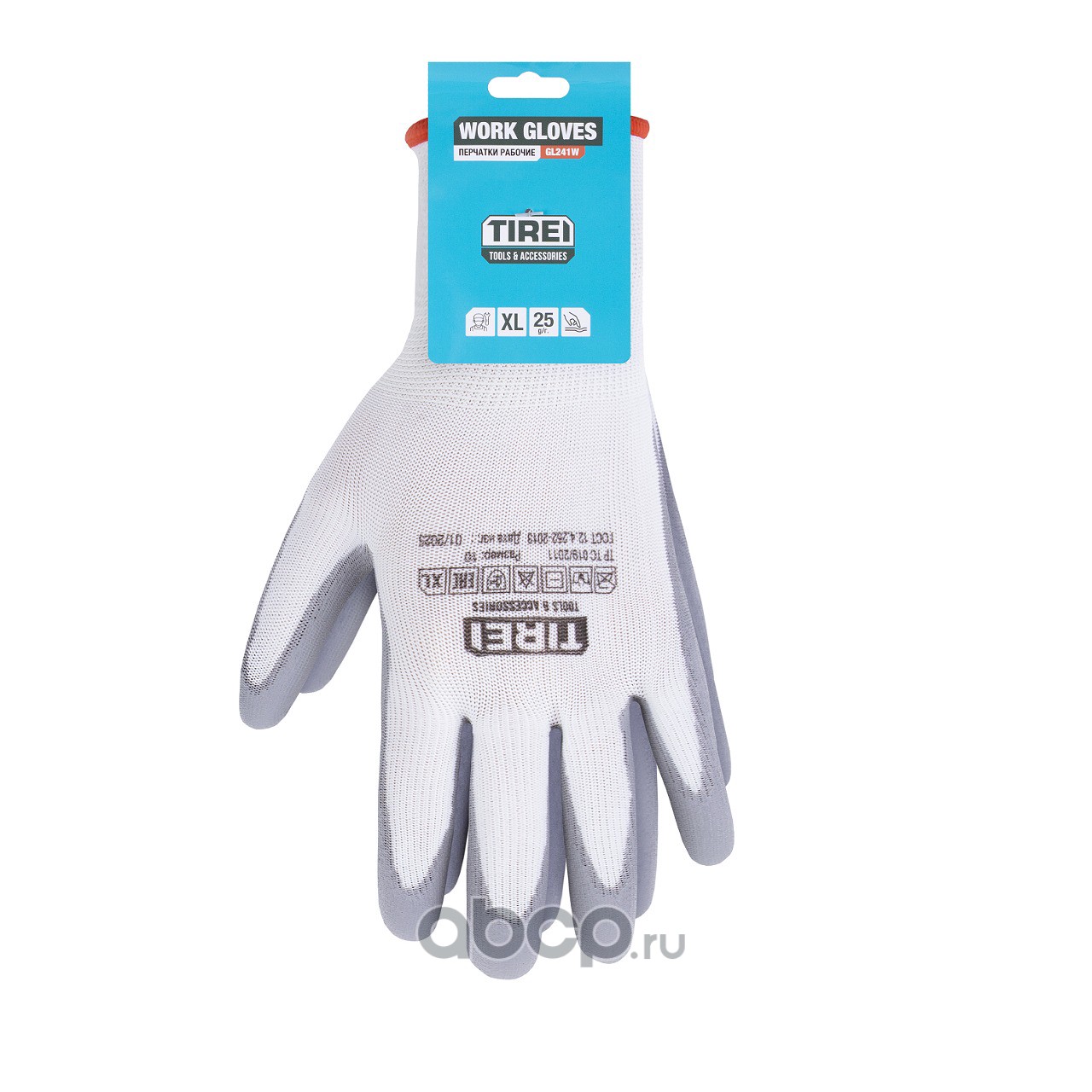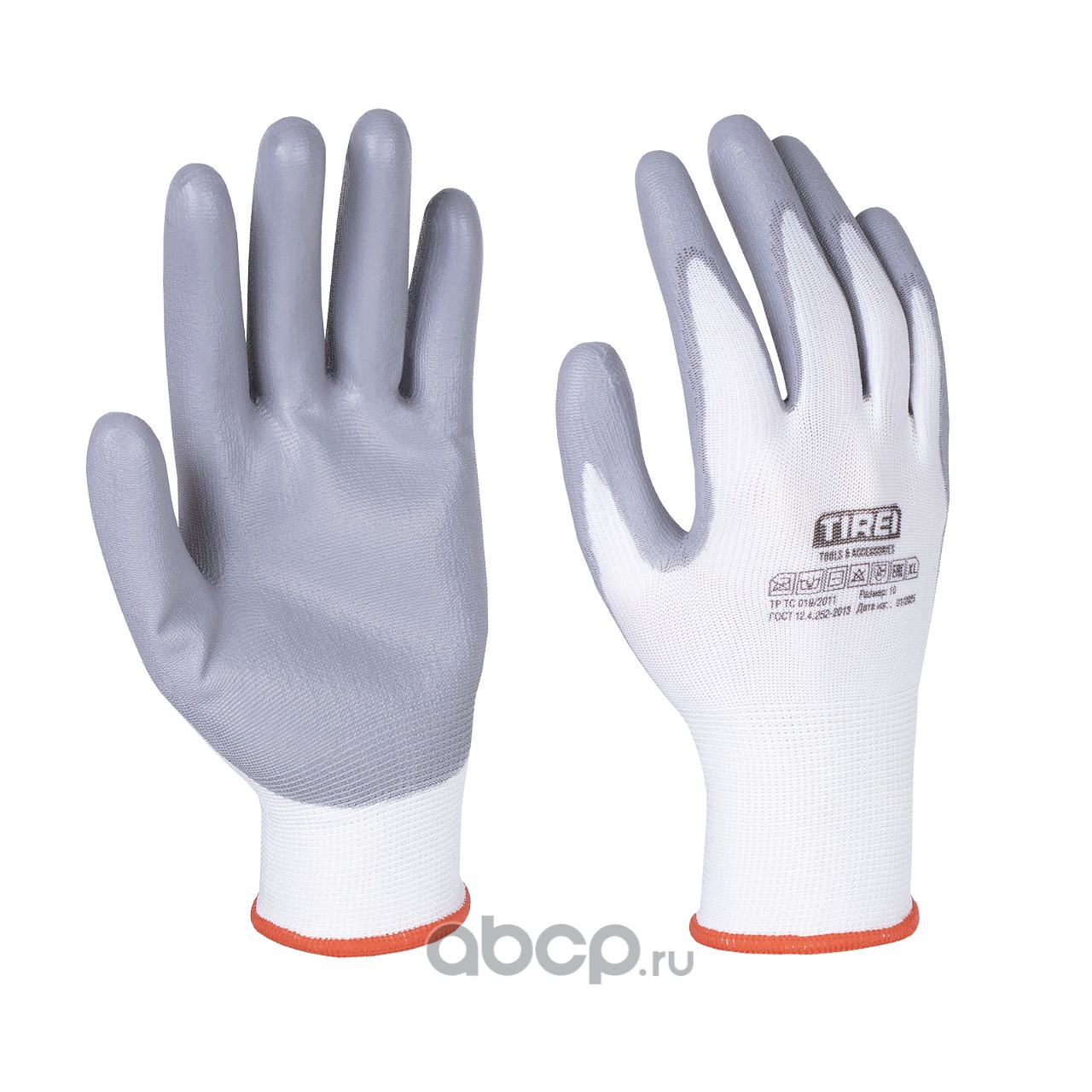 Перчатки полиэфирные с цельным ПУ покрытием ладони, 1 пара, XL, бел./серые