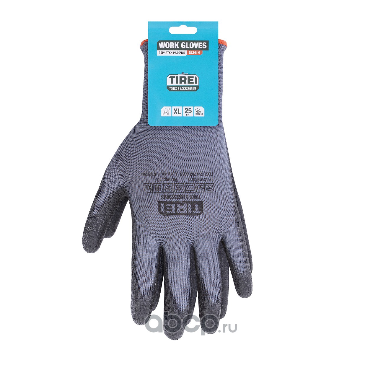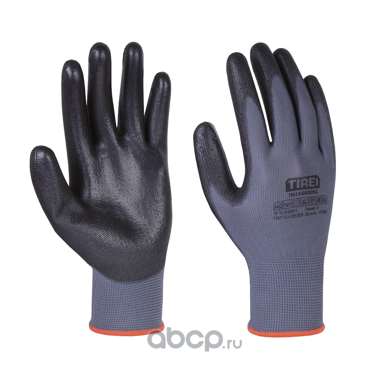 Перчатки полиэфирные с цельным ПУ покрытием ладони, 1 пара, XL, сер./черные