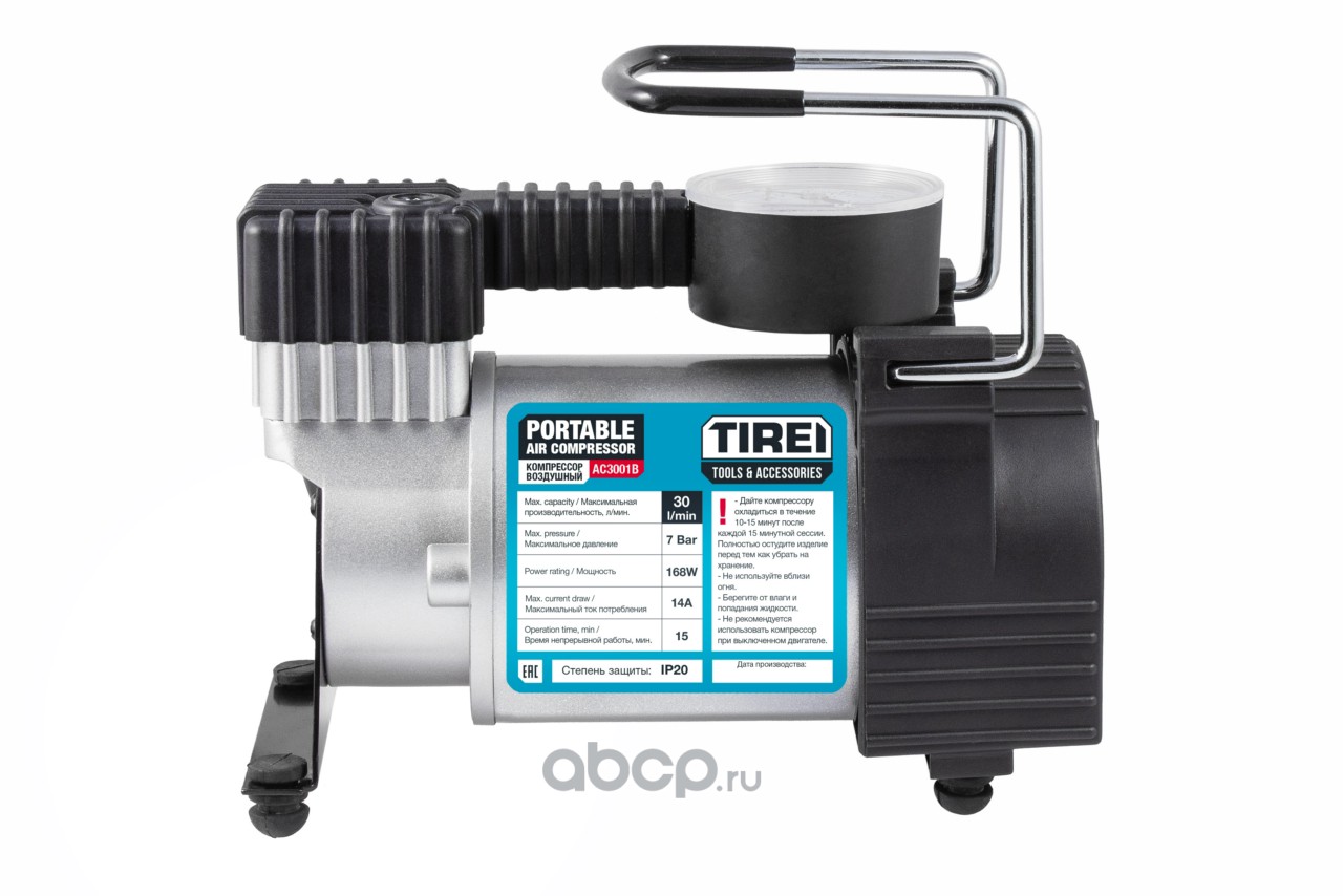 Компрессор воздушный двухпоршневой, 50 л./мин., 10 бар в пластиковом кейсе с ремкомплектом для шин